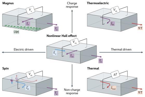 该论文的第一作者为南科大量子科学与工程研究院助理研究员杜宗正,通讯作者为卢海舟,合作者包括上海师范大学教授王春明、南科大物理系博士生孙海鹏以及北京大学讲席教授、中国科学院院士谢心澄。南科大是论文第一单位。 第二篇为卢海舟团队受邀为NatureReviewsPhysics撰写的题为"Nonlinear Hall effects" (非线性霍尔效应)的综述展望文章,该文章详尽综述、概括分析了近年来关于非线性霍尔效应及其推广的重要研究进展,阐述了目前存在的问题与挑战,展望了未来的发展方向与可能应用,为相关领域的研究提供了重要参考。