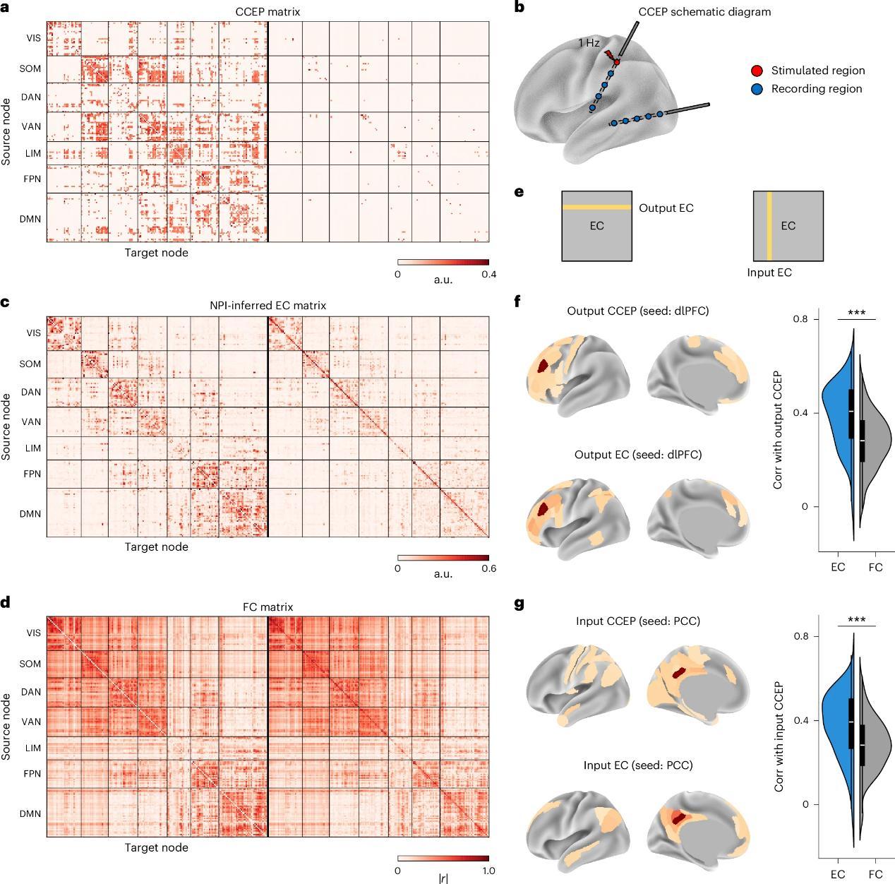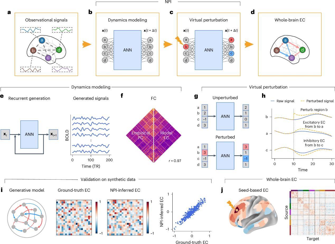 本文使用多种已知真实EC的生成模型验证了NPI框架的有效性(图 1i)。当应用于rs-fMRI数据时,NPI揭示了人脑EC的特征(图 1j)。