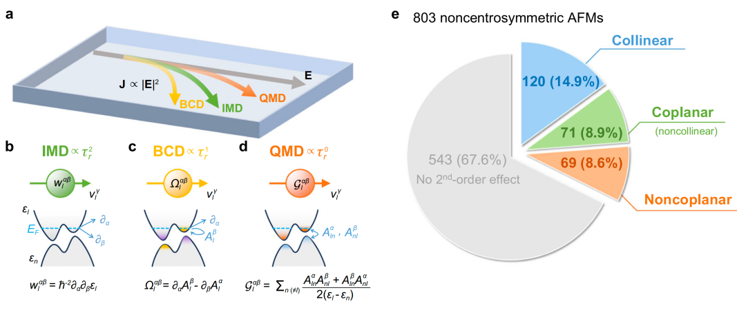 图2. 量子几何相关的二阶输运效应与反铁磁材料数据库概况