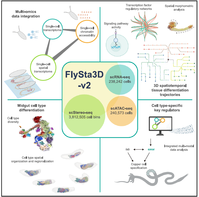 多细胞生物的发育过程复杂且精巧,受众多基因和信号通路在时空维度上的严格调控。果蝇作为一种经典模式生物,其发育特征在哺乳动物中表现出显著的保守性,其胚胎发生和器官形成的研究为揭示发育机制提供了关键线索。近年来,单细胞多组学技术的发展为研究生物体发育过程和细胞异质性提供了全新手段。然而,特别是涉及时空动态信息的技术,在果蝇中的应用仍存在研究空白。