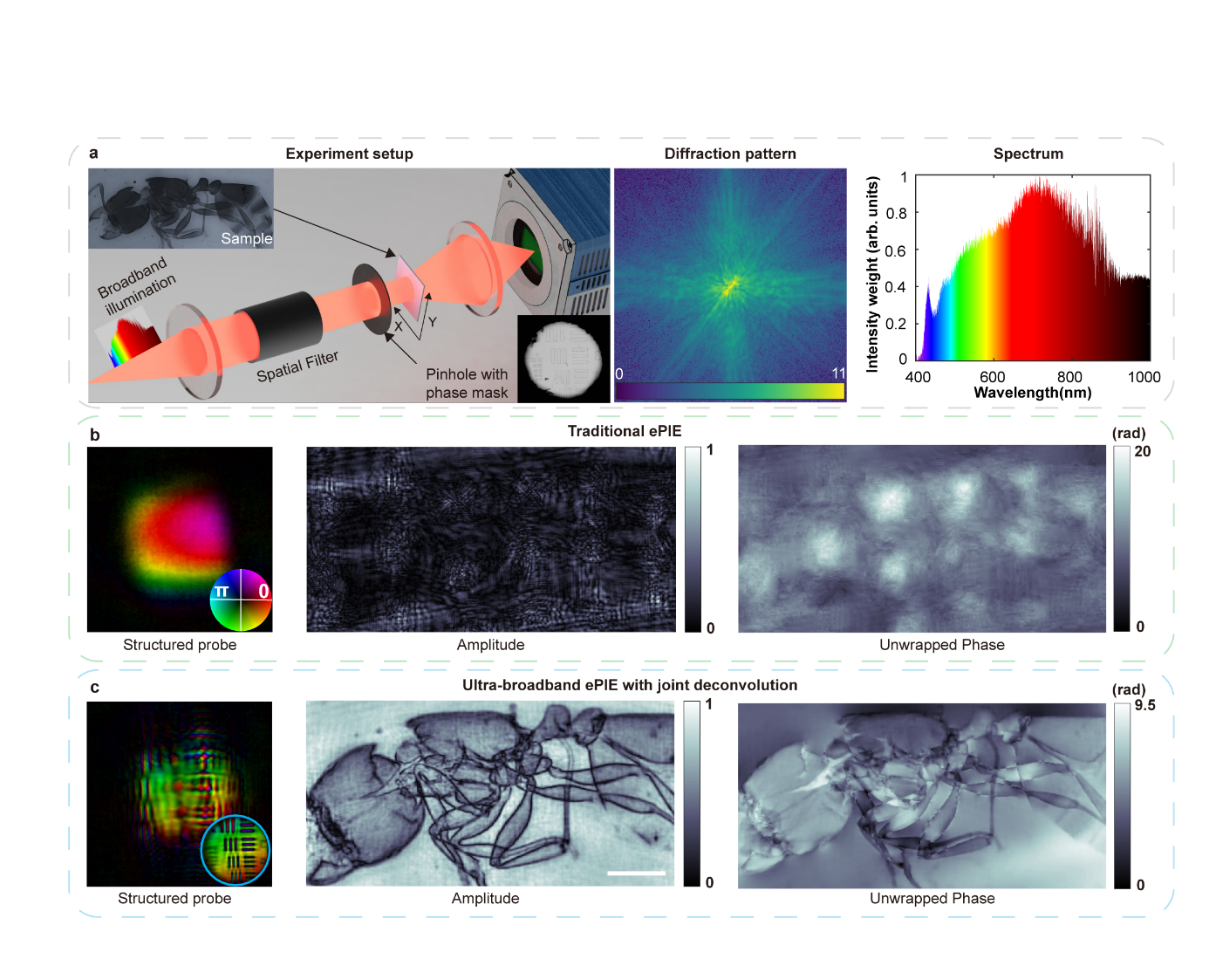 近日,南方科技大学电子与电气工程系副教授张福才课题组提出了一种适用于色散样品的超宽带无透镜衍射成像方法(Ultra-broadband ptychography),相关成果以“Ultra-broadband ptychography for dispersive samples”为题发表在Nature Communications上。